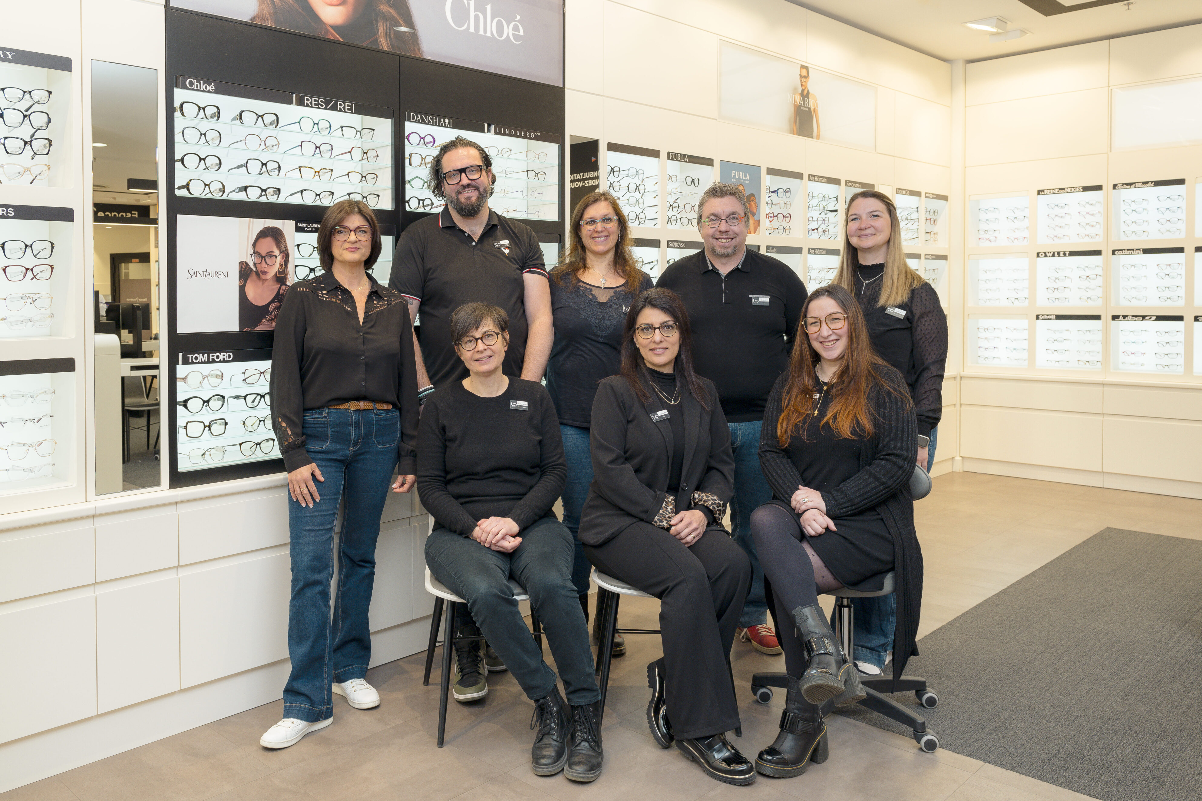Chez Bo.Optic Mundolsheim, situé dans le centre commercial Carrefour de Mundo, Corinne et son équipe d’opticiens experts– Jonathan, Mylène, Stéphanie, Valérie, Nagihan, Amandine, Stella, et Brice – vous offrent un service personnalisé avec professionnalisme et bienveillance. Spécialisés dans l’adaptation des lunettes progressives et la réalisation de tests visuels, ils vous aident à choisir parmi une sélection de montures optiques et solaires tendance avec des verres 100% d’origine française.
